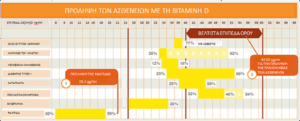 * ΠΑΡΑΔΕΙΓΜΑ: Η συχνότητα εμφάνισης του καρκίνου του μαστού μειώνεται κατά 30% όταν τα επίπεδα της 25(ΟΗ)D είναι 32 ng/ml. Το ποσοστό αυτό αυξάνεται στο 83% όταν τα επίπεδα φτάνουν τα 50 ng/ml.